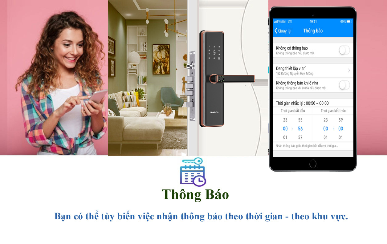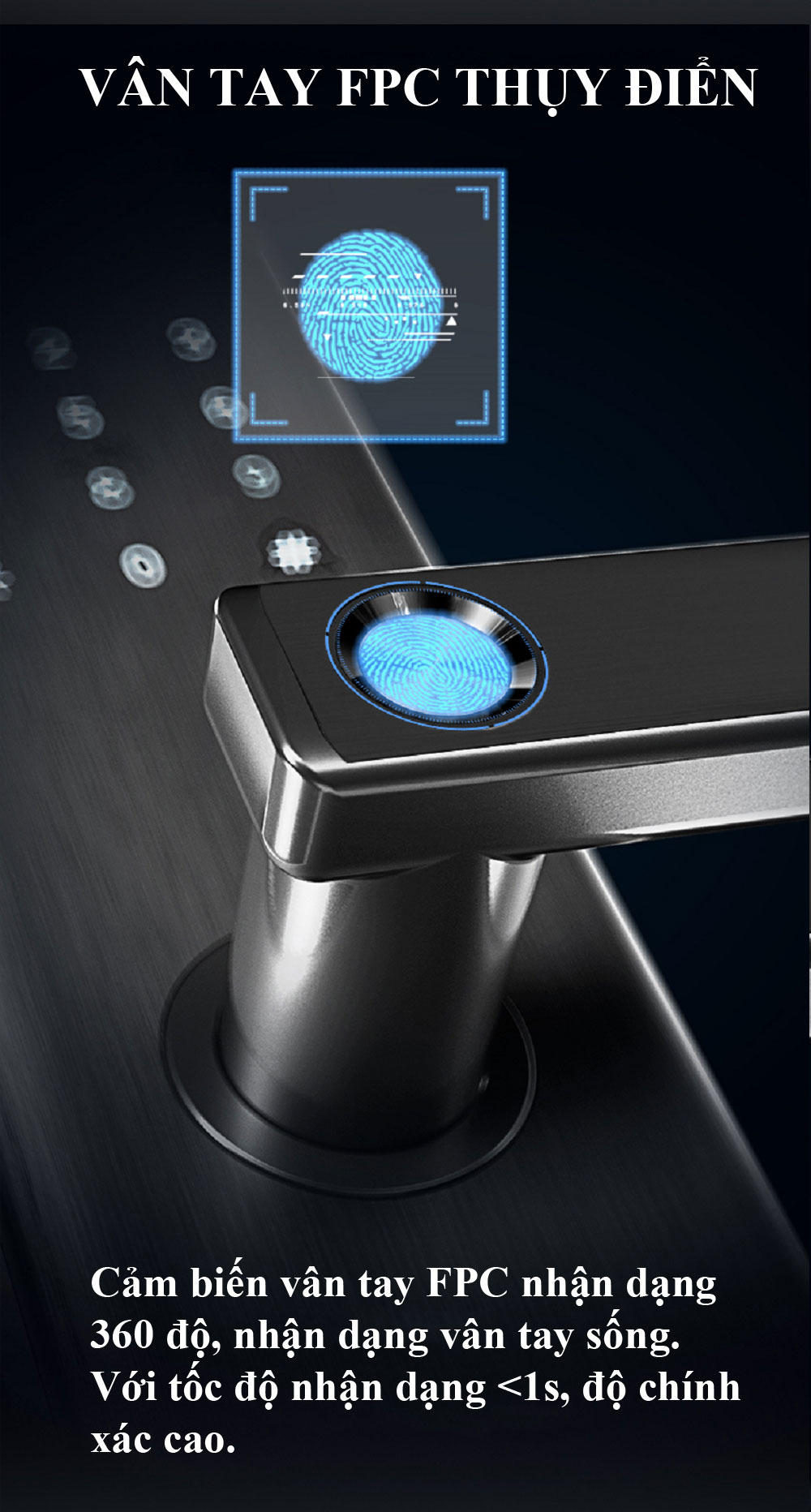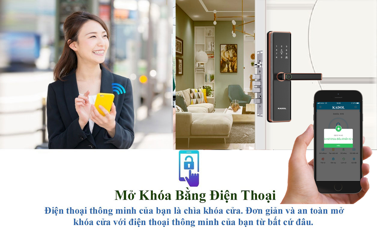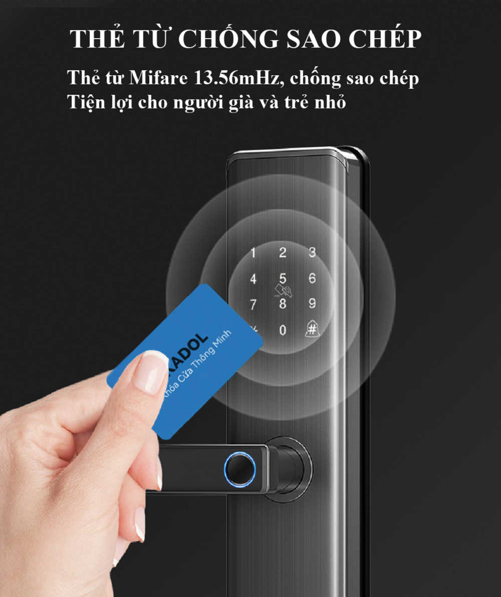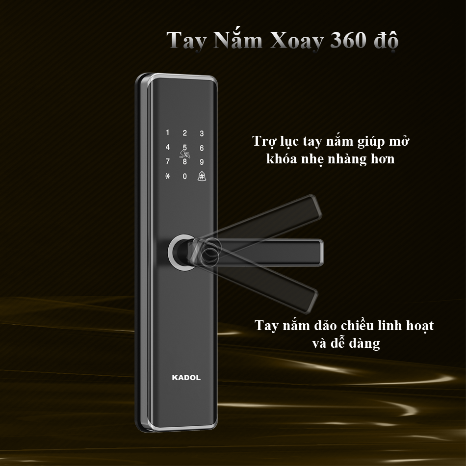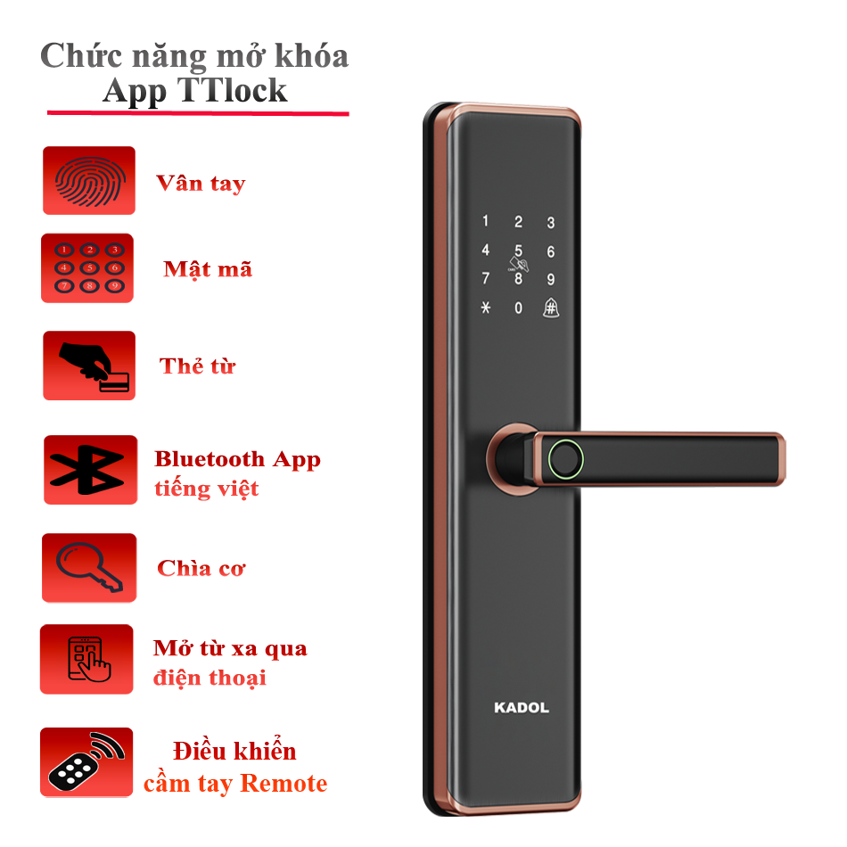 Kadol FP19C thiết kế với đa chức năng mở khóa: Vân tay, Mật mã, Thẻ từ, Chìa cơ, Bluetooth TTlock