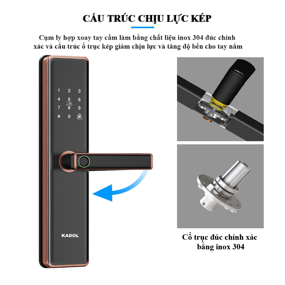 Cơ khóa với 5 chốt an toàn. Chất liệu inox304 siêu bền bỉ