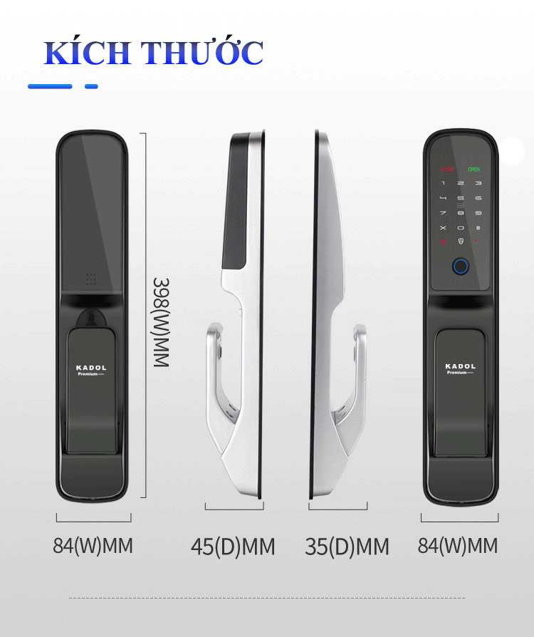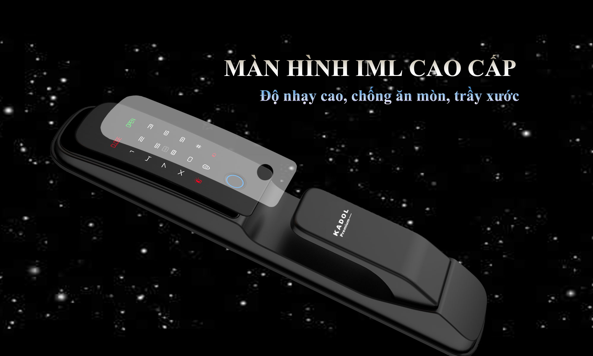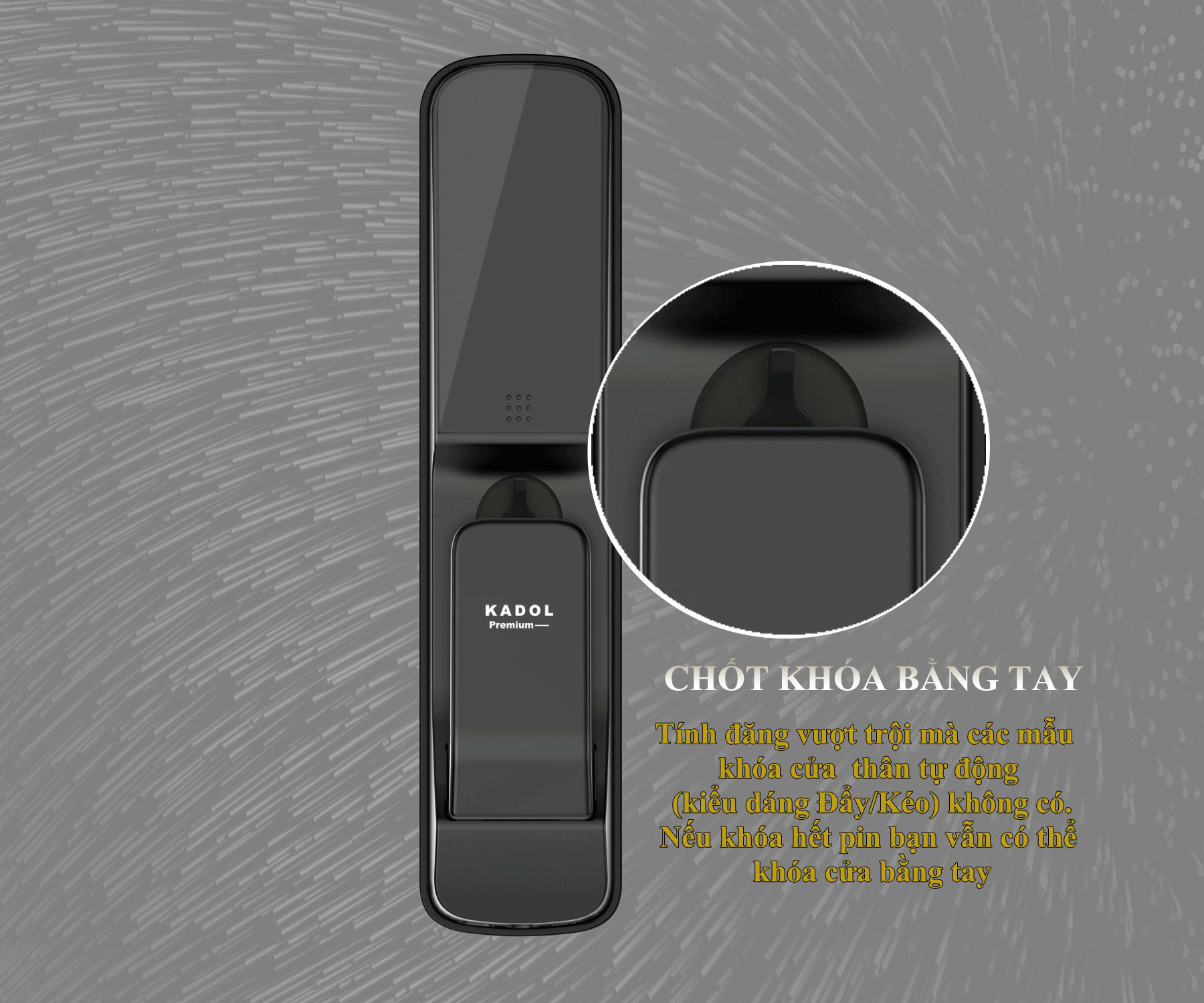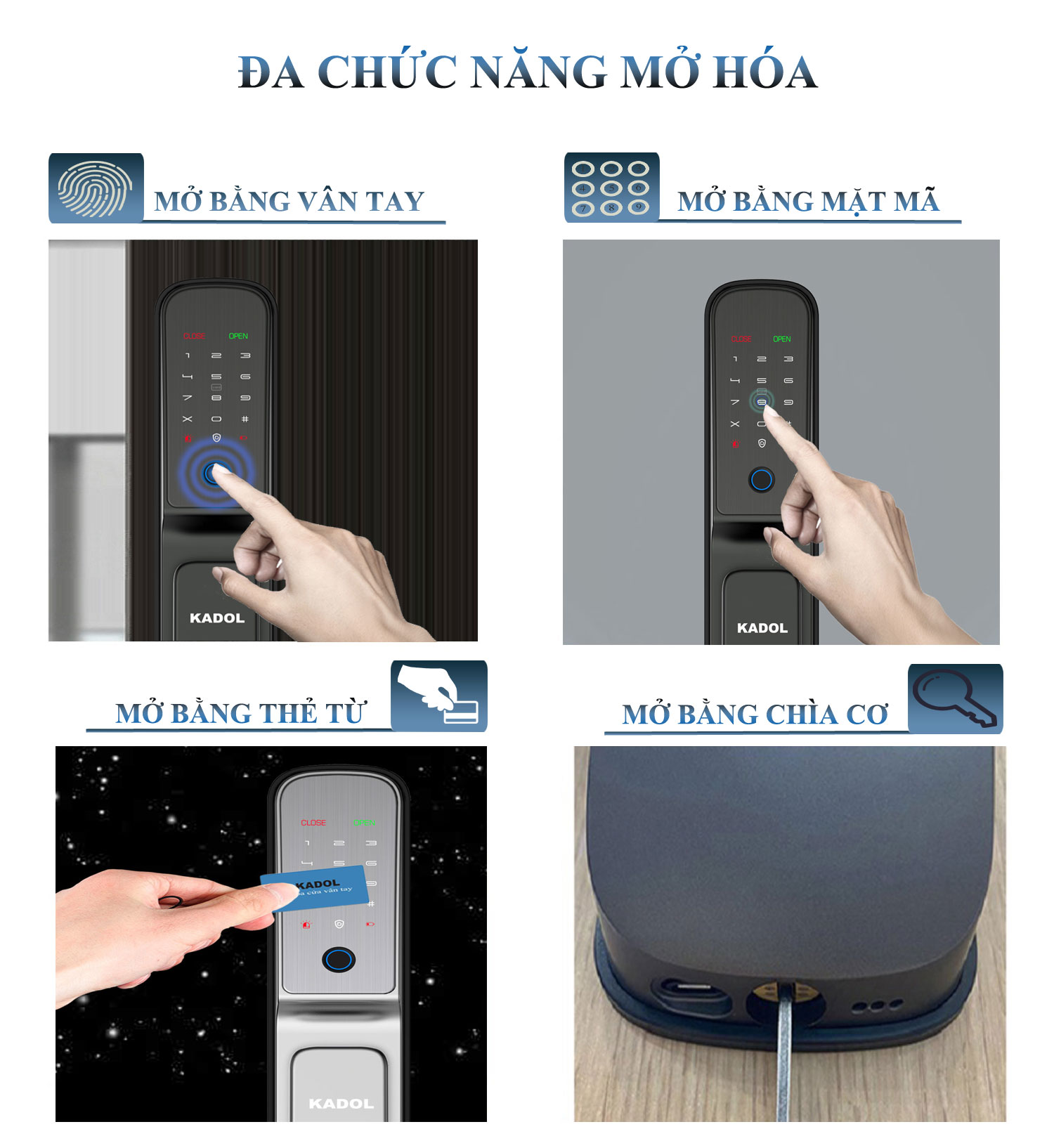 Khóa thông minh Kadol KD-M150: là một trong những mẫu khóa thuộc dòng sản phẩm cao cấp bán chạy nhất hiện nay. Khóa bảo mật bằng vân tay, thẻ từ, mã số, chìa cơ. Công nghệ Khóa cửa thông minh Kadol KD-M150 mật khẩu ảo và nhận diện vân tay dựa trên cả da và mạch máu cho độ chính xác hoàn hảo. Dây chuyền sản xuất chuẩn cơ khí Đức cùng khâu kiểm tra chất lượng khắt khe tạo nên KD-M150 có tuổi thọ bền bỉ, chống cưa, cắt. KADOL cam kết đem lại cho người dùng trải nghiệm ấn tượng, an toàn và đẳng cấp.