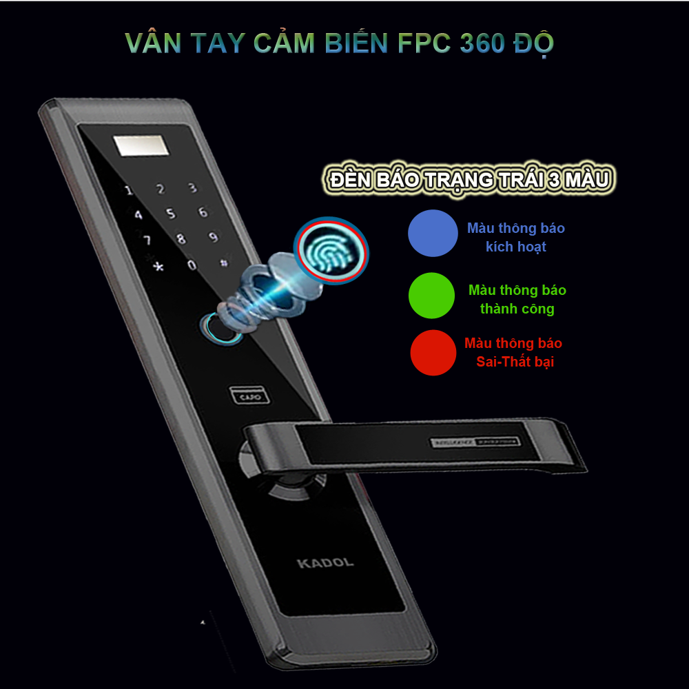 Kadol FP39 mở khóa bằng vân tay, mã số, thẻ từ và chìa khóa cơ, có thể mở rộng thêm điều khiển từ xa
