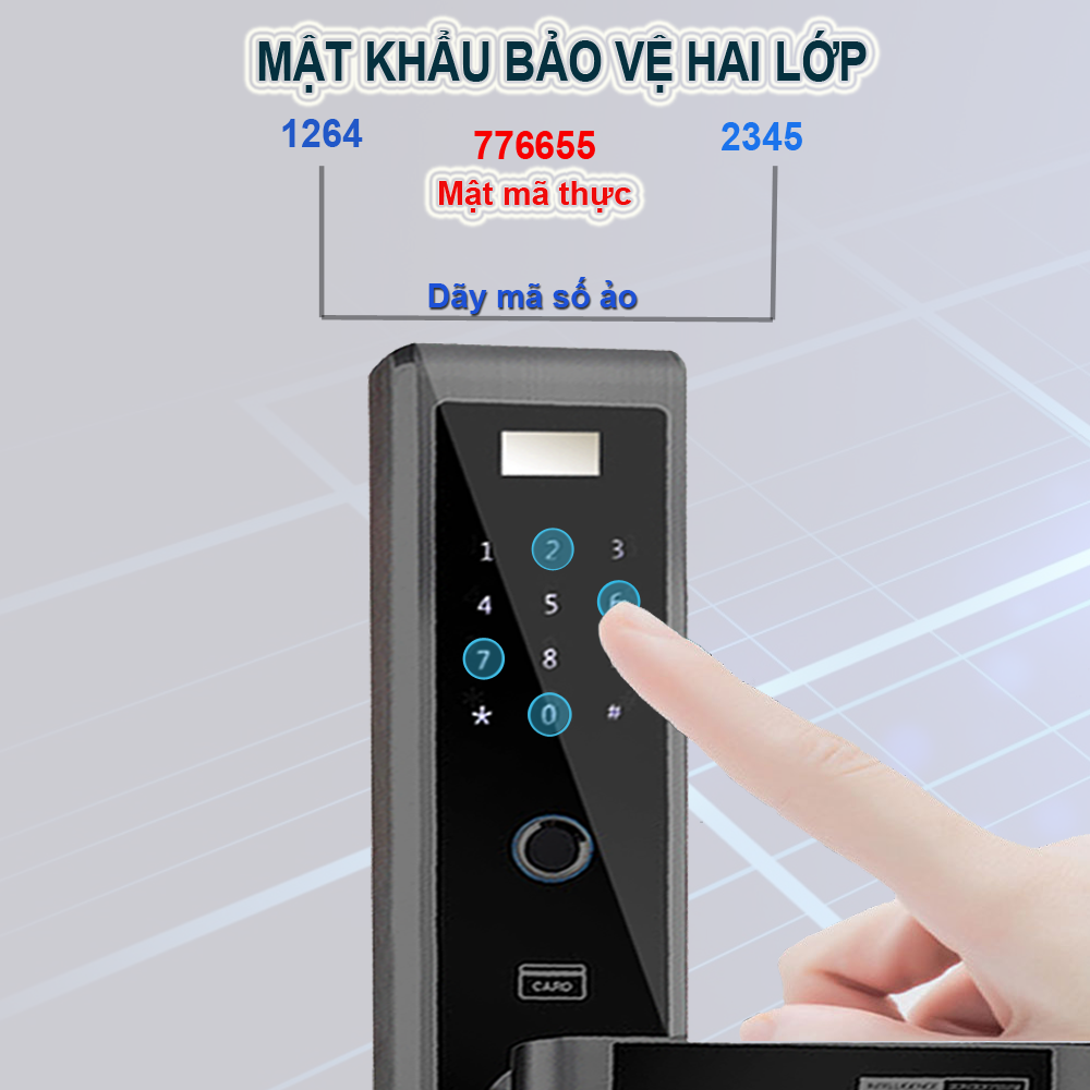 Mật mã chống nhìn trộm, chống sao chép: Phía trước và phía sau mật mã mở khóa bạn có thể tùy ý thêm các con số ngẫu nhiên để đánh lừa mắt nhìn người ngoài, cũng như sáo trộn vị trí các con số