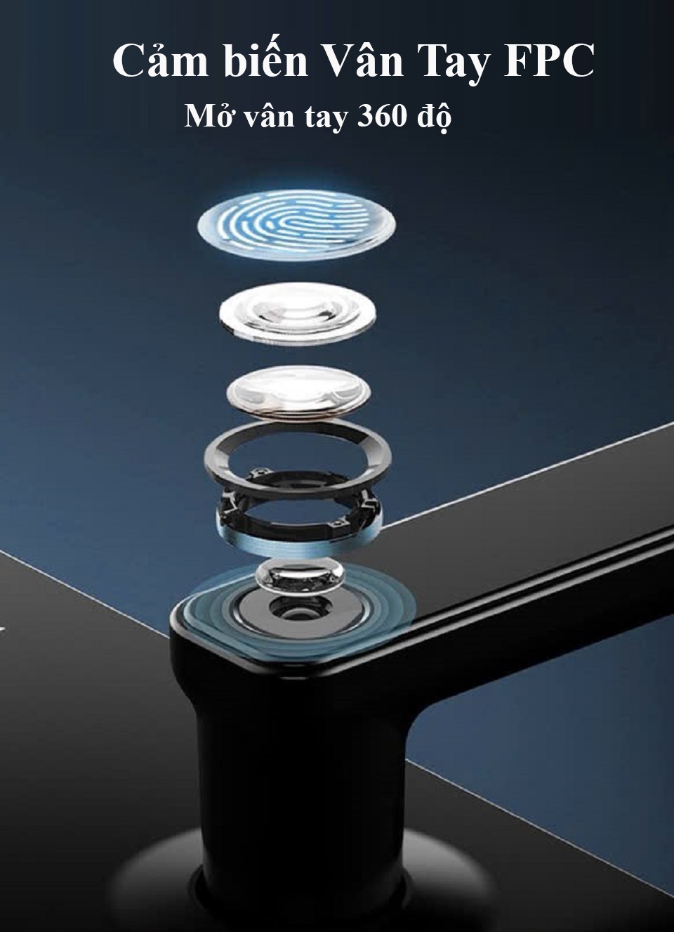 Vân tay FPC: nhận dạng 360 độ với 3 trạng thái màu sắc giúp người dùng có thể dễ dàng, nhanh chóng nhận biết việc thao tác của mình là đúng hay sai