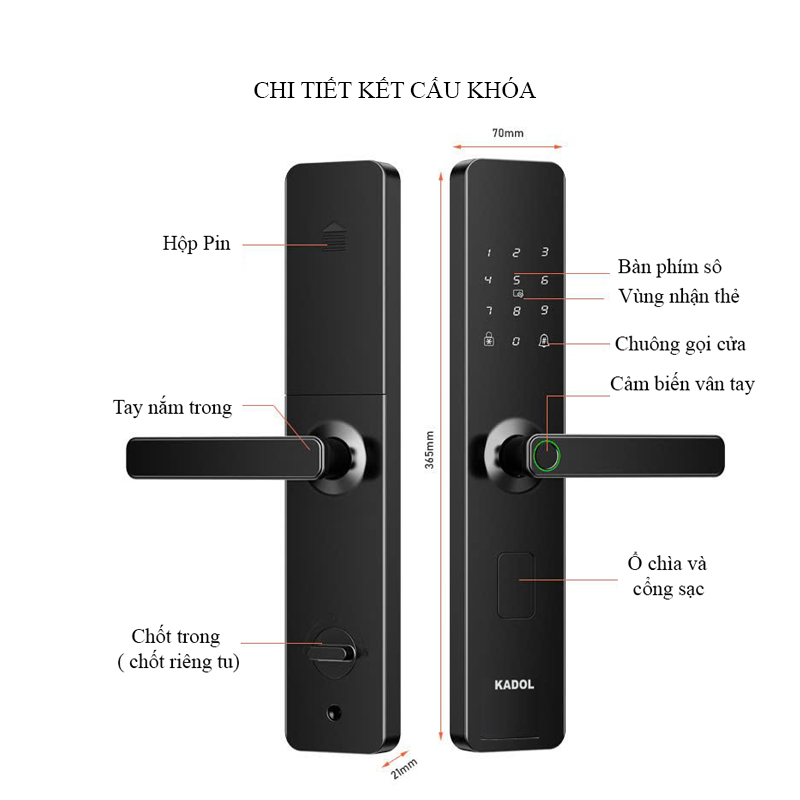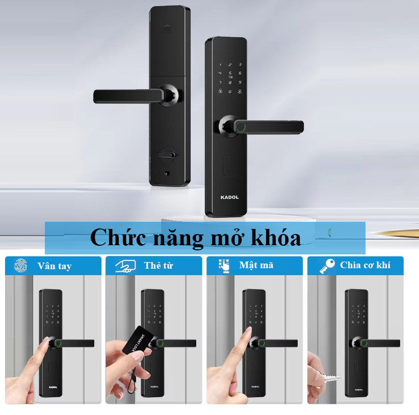 - Thẻ từ Mifare 13.56mHz ( RFID). Chức năng thẻ từ giúp cho việc mở khóa của người già, trẻ em, người khiếm thị trở nên dễ dàng hơn