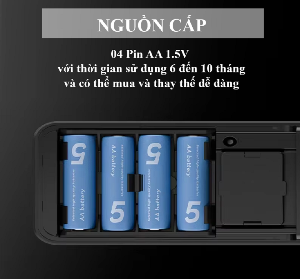 04 pin AA 1.5V cho thời gian sử dụng lên đến 10 tháng