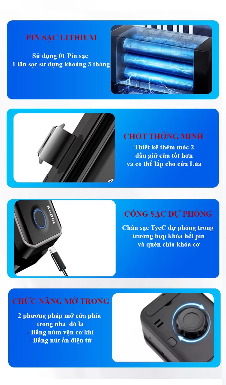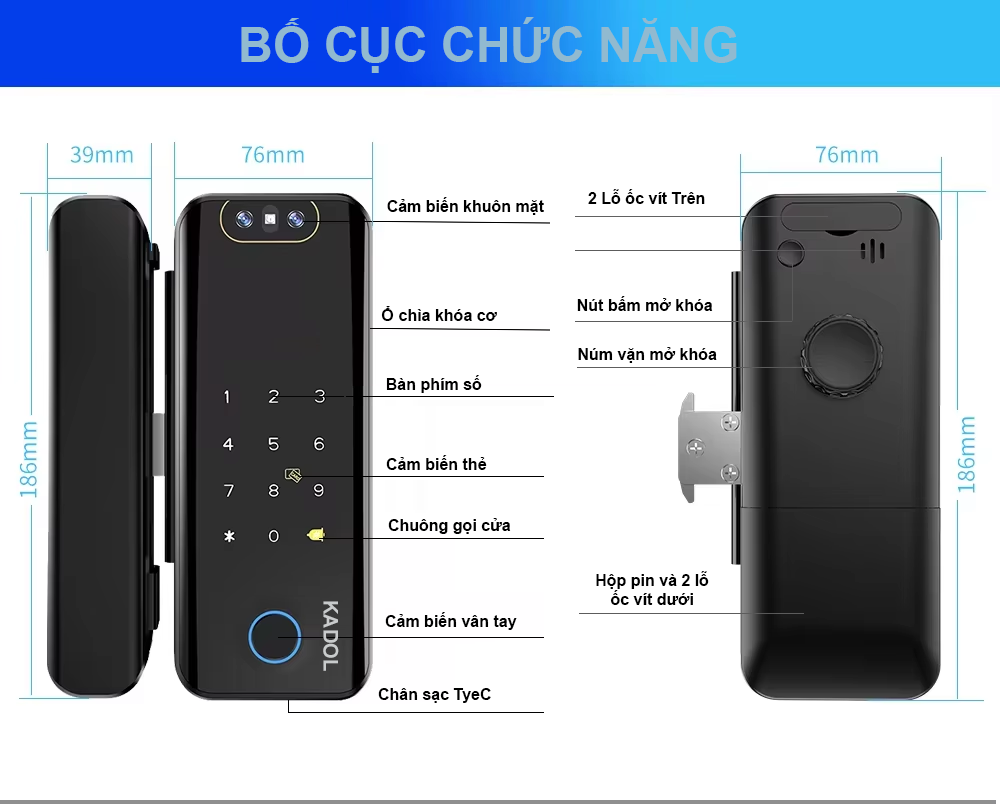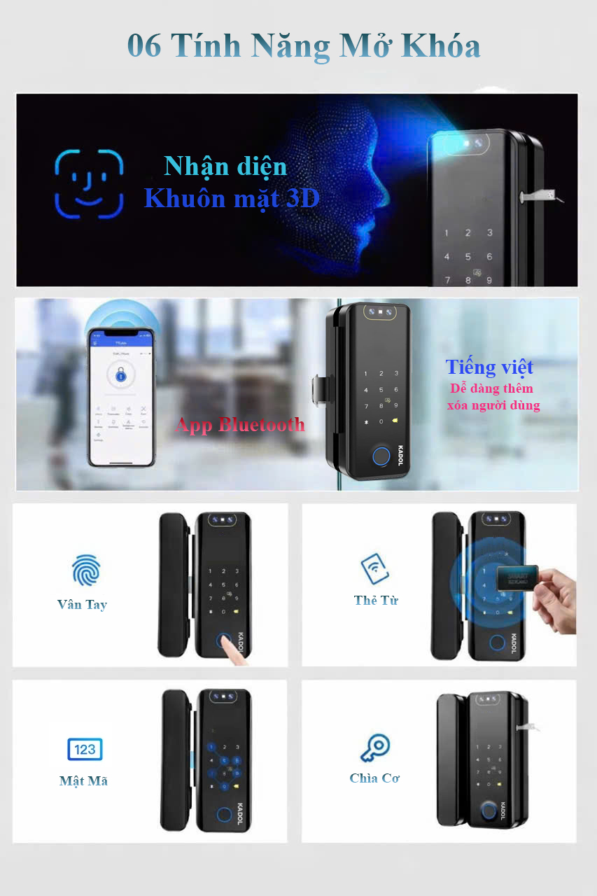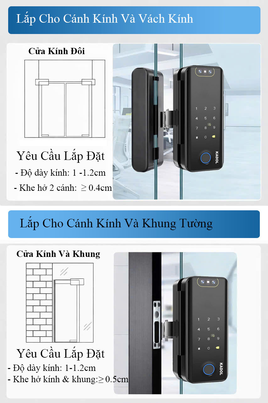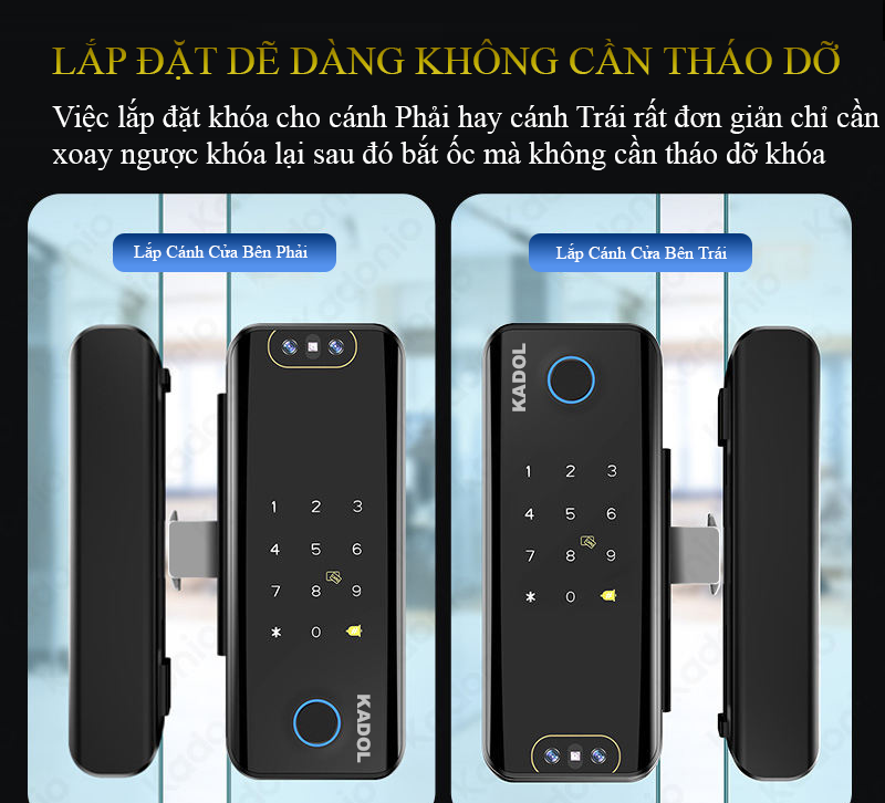 – Khóa vân tay cửa kính Kadol KD-GL600 Pro pro lắp đặt vô cùng đơn giản: