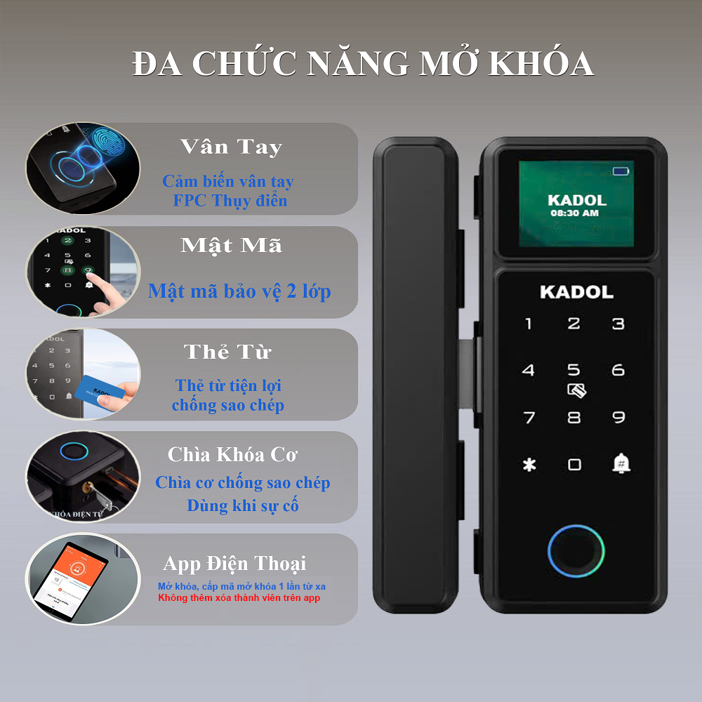 – Khóa vân tay cửa kính Kadol KD-GL300 lắp đặt vô cùng đơn giản: